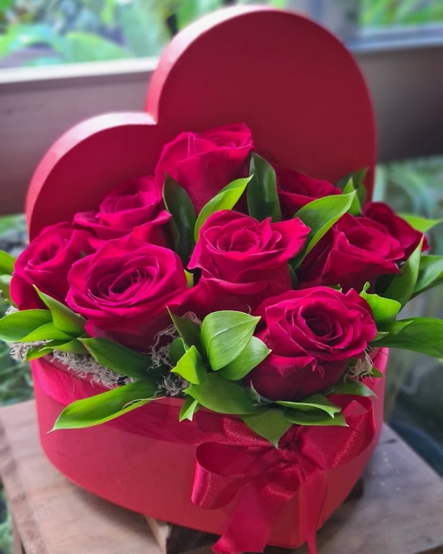 Caixa coração com 09 rosas